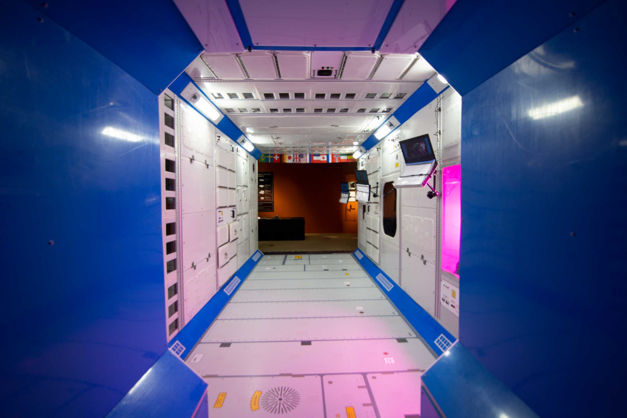 Engineered for durability and efficiency, Neighborhood Earth was built to withstand the demands of a multi-year tour. Utilizing high-quality materials and modular construction, the exhibition maintains a sleek, high-tech aesthetic while allowing for seamless installation in various venues. Advanced motion graphics and projection mapping enhance the storytelling experience, immersing visitors in the history and future of space exploration. Hands-on interactives and tactile elements were carefully designed to complement the digital experience, creating a balance between technology and physical engagement.